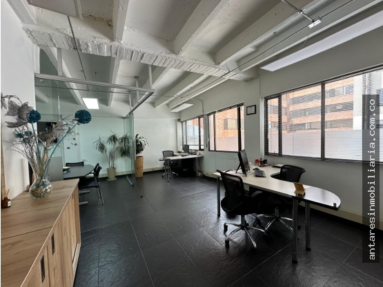 Se arrienda oficina de 80 m² (posibilidad de semi-amoblada), con dos parqueaderos privados y excelente iluminación natural. Sin muebles $2.100.000 + Admon.